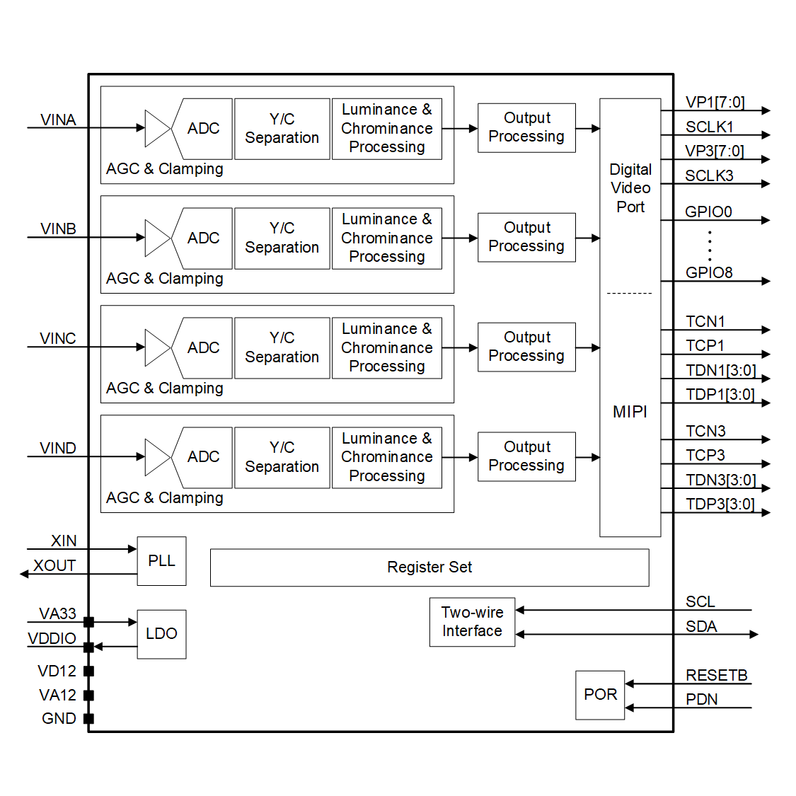- Analog video decoding for resolution up to 1440p (4M)