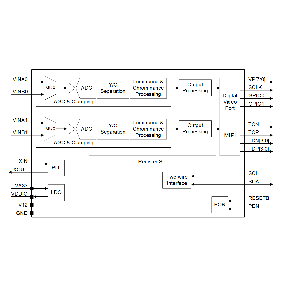 | 2 (Pseudo-Differential) | 2 | MIPI | 3.3V 1.2V |
